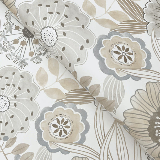 York Wallcoverings York Wallcoverings Artistic Bouquet Neutral Wallpaper Whimsical Florals Browns - ZM2894