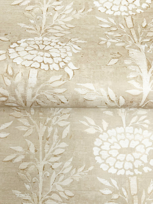 York Wallcoverings Tea Garden II Kimora's Garden Linen Wallpaper Traditional Florals Beiges - ZA8037