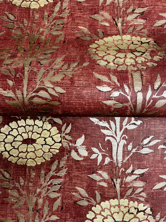 York Wallcoverings Tea Garden II French Marigold Red and Gold Wallpaper Eclectic Florals Reds - ZA8019