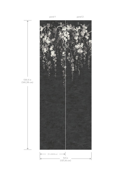 York Wallcoverings Tea Garden II Sakura Blooms Black Wall Mural Transitional Florals Blacks - ZA8058M