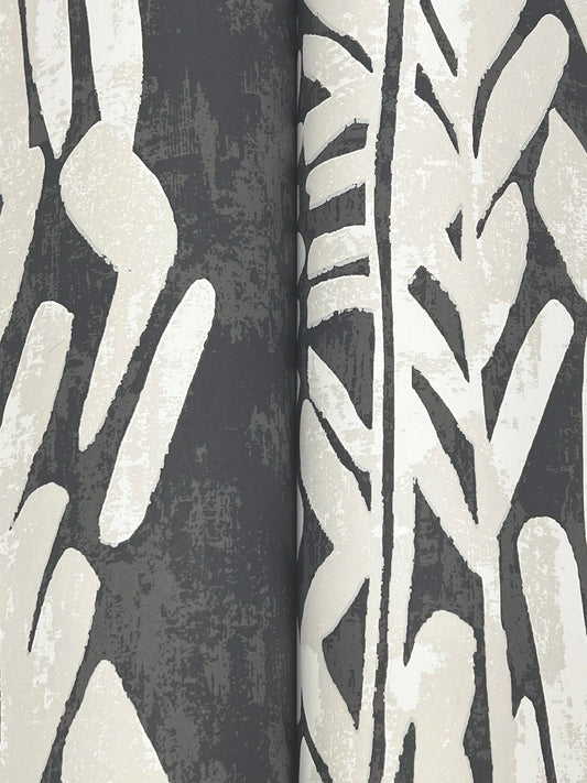 York Wallcoverings Tea Garden II Timira Charcoal Wallpaper Tropical Botanical Blacks - ZA8062