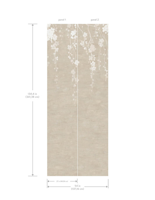 York Wallcoverings Tea Garden II Sakura Blooms Neutral Wall Mural Transitional Florals Beiges - ZA8059M