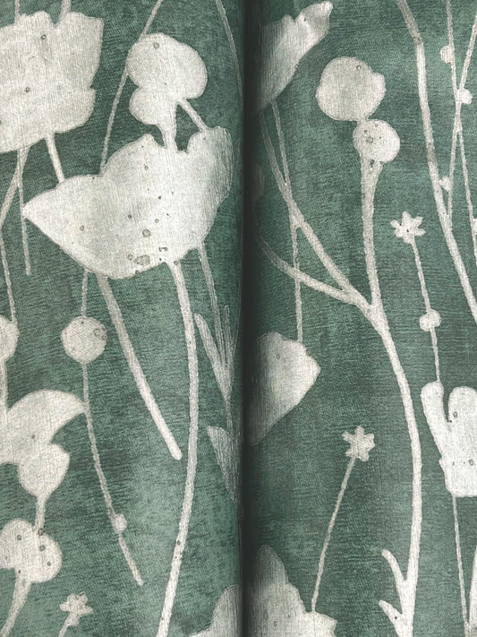 York Wallcoverings Tea Garden II Shimmering Poppies Green and Silver Wallpaper Modern Florals Greens - ZA8068