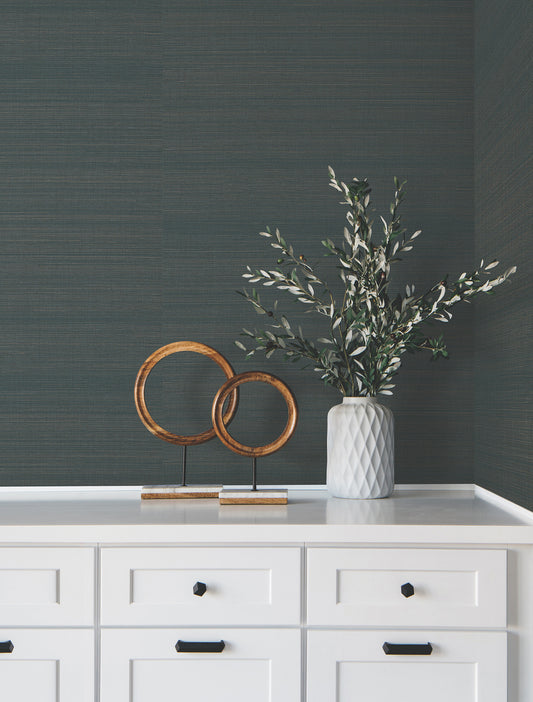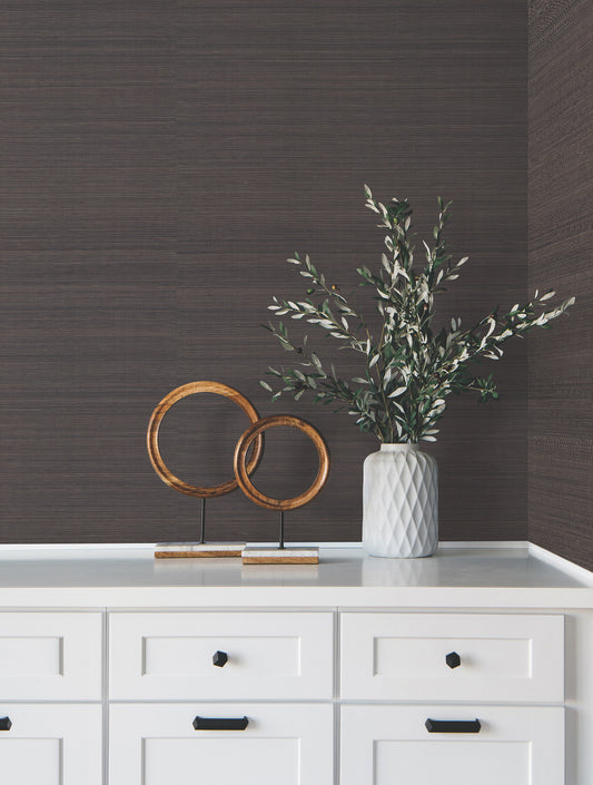 York Wallcoverings Grasscloth and Natural Resource Modern Abaca Black Wallpaper Traditional Grasscloth Blacks - GV0274