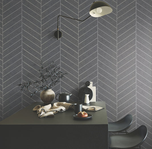 York Wallcoverings Traveler Atelier Herringbone Dark Grey Wallpaper Geometrics Greys - HO2107