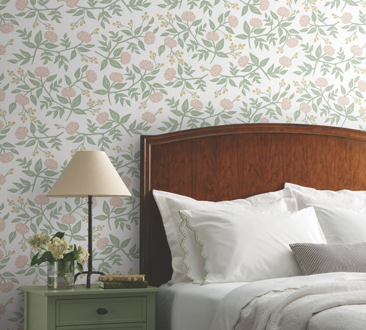 York Wallcoverings Rifle Paper Co. Peonies Blush Floral Premium Peel + Stick Wallpaper Botanical Modern Blush Wallpaper - PSW1685RL