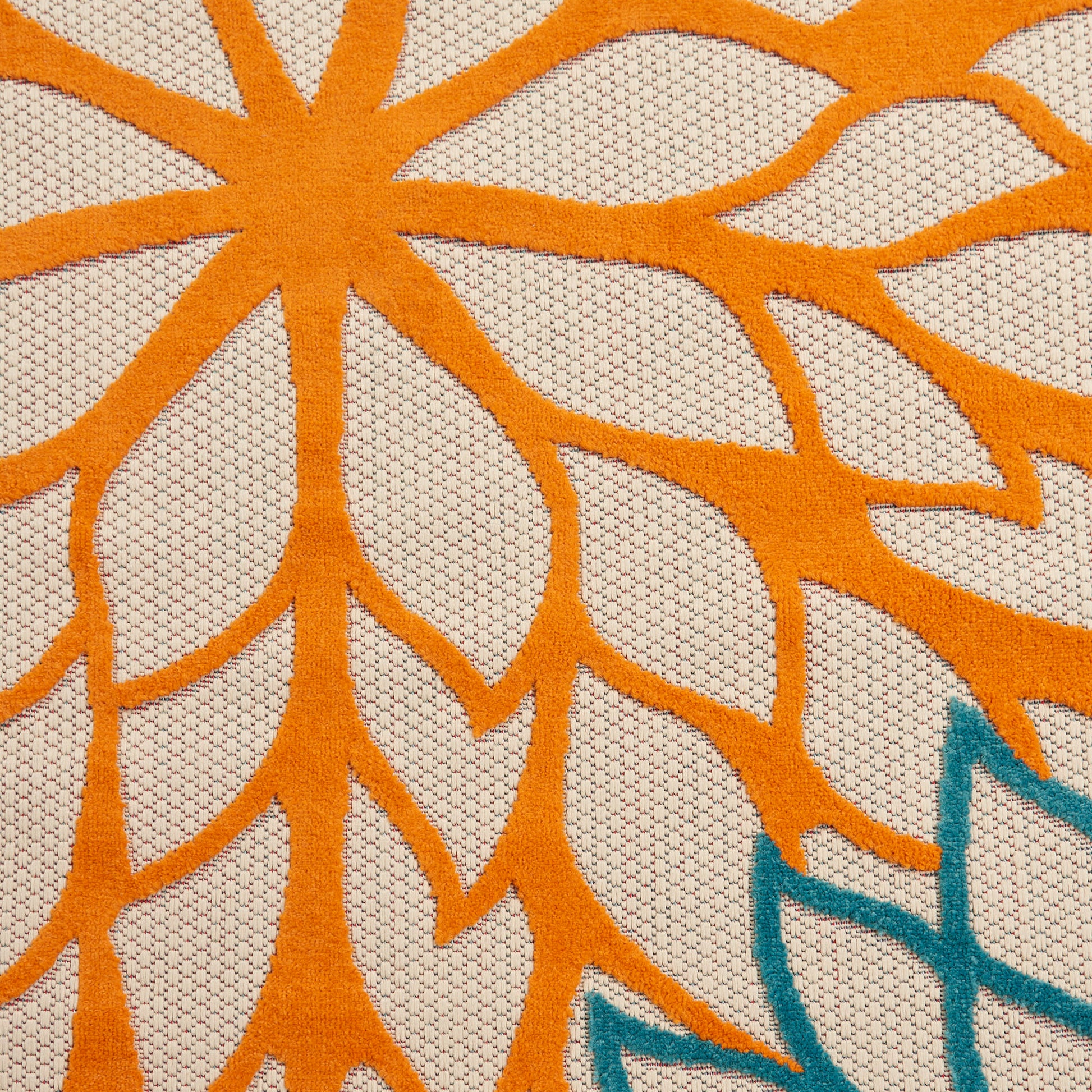 About Us:For more than 30 years, Nourison has built a reputation as a leading multi-category resource in today?s floor covering market, working with designers and retailers to provide beautiful, top-quality rugs, carpets, and home accessories for homes around the world. Our company offers a comprehensive range of products across styles and price ranges, in both commercial and residential spaces. This sunny and sensational collection of flat-woven outdoor rugs is pretty, practical, and perfect for high-traffic areas. With its inviting assortment of classic and contemporary designs, tempting color palettes, and terrific textures, these multipurpose rugs will afford an air of simple sophistication to any environment. Bring extra life and excitement to your patio, deck, or porch with this Aloha floral outdoor rug. The high-low construction, presented in orange, red, and green add a festive touch of the tropics to your patio, deck, or porch. This rug is machine-made from premium stain-resistant fibers that are easily washable with a hose: simply rinse and allow both sides time to fully air dry. To extend the life of your rug, bring indoors during extreme weather.