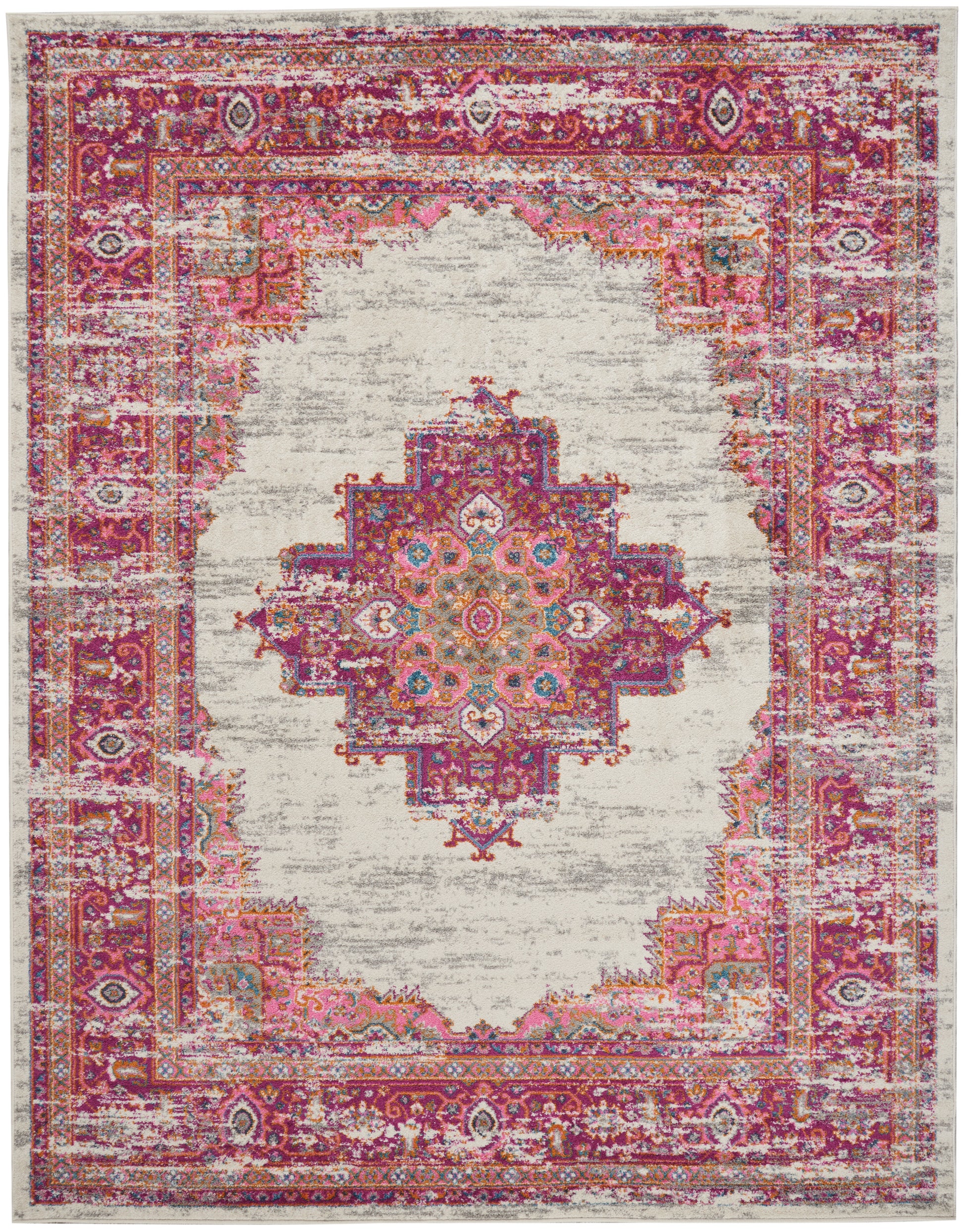 About Us:For more than 30 years, Nourison has built a reputation as a leading multi-category resource in today?s floor covering market, working with designers and retailers to provide beautiful, top-quality rugs, carpets, and home accessories for homes around the world. Our company offers a comprehensive range of products across styles and price ranges, in both commercial and residential spaces. Rich, lush, seductive color draws you in to the plush beauty of the lovely Passion Collection. If you thrill to the pleasures of beautifying your home, you'll find Passion area rugs simply irresistible. These fantastic florals, stunning abstracts and dramatic geometric designs meld elements of classic Persian motifs with a modern sensibility. Woven of polypropylene fibers on state-of-the-art powerlooms, this collection of area rugs combines thick, comfortable pile with an easy-care approach. Advanced overdye techniques create an exciting patina effect. Live a more colorful life with Passion in your home! This beautifully distressed Persian medallion rug merges traditional bordered rug style with a contemporary vibrance. Multiple pink hues are accented with traditional Persian designs in blue, orange, and green, while the brilliant tones are balanced by a distressed effect for a vintage vibe that's perfectly at home in relaxed, Bohemian room decor. The soft, cut pile shimmers with a beautiful glossy sheen, and combines comfort with modern easy cleaning.