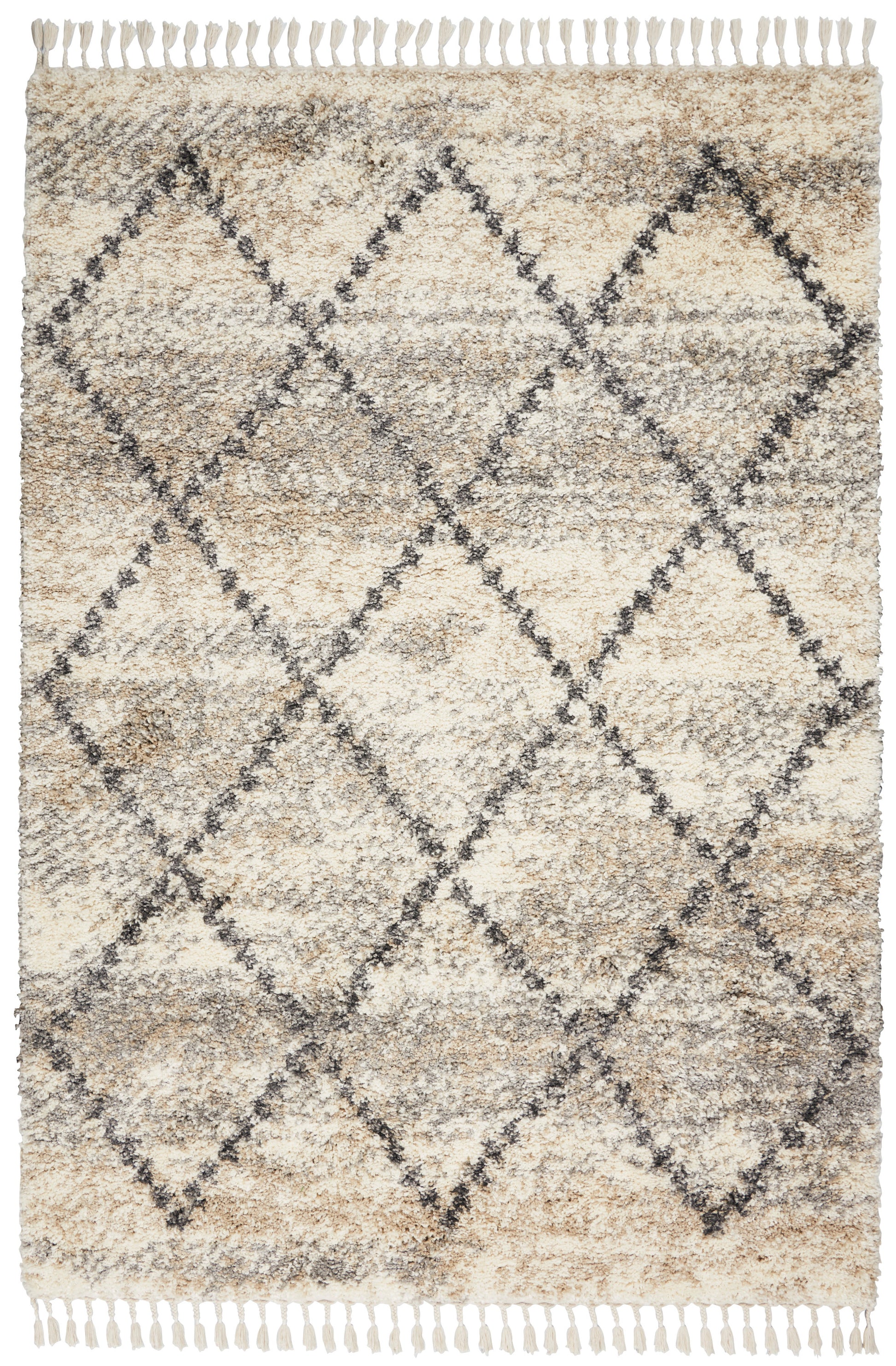 About Us:For more than 30 years, Nourison has built a reputation as a leading multi-category resource in today?s floor covering market, working with designers and retailers to provide beautiful, top-quality rugs, carpets, and home accessories for homes around the world. Our company offers a comprehensive range of products across styles and price ranges, in both commercial and residential spaces. With contemporary hues and clean lines, Nourison's Oslo Collection reflects a Scandinavian influence in these plush shag rugs. These thick, inviting rugs feature easy-care fibers with twisted fringe finish for an authentic tribal look and feel, featuring lattice and diamond designs in rich greys and soothing neutral colors. Each rug adds a layer of warmth and welcome to any space in your home.