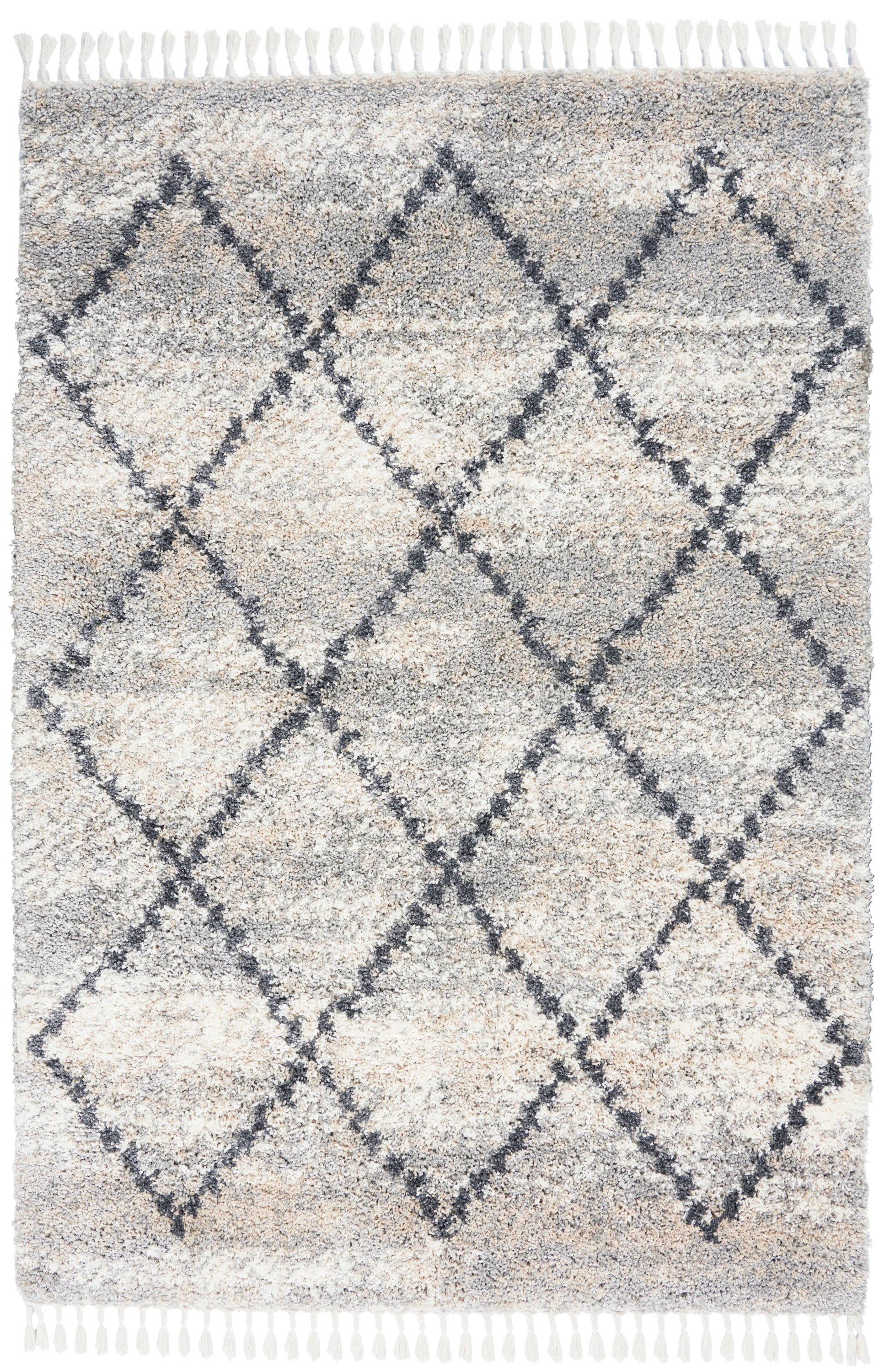 About Us:For more than 30 years, Nourison has built a reputation as a leading multi-category resource in today?s floor covering market, working with designers and retailers to provide beautiful, top-quality rugs, carpets, and home accessories for homes around the world. Our company offers a comprehensive range of products across styles and price ranges, in both commercial and residential spaces. With contemporary hues and clean lines, Nourison's Oslo Collection reflects a Scandinavian influence in these plush shag rugs. These thick, inviting rugs feature easy-care fibers with twisted fringe finish for an authentic tribal look and feel, featuring lattice and diamond designs in rich greys and soothing neutral colors. Each rug adds a layer of warmth and welcome to any space in your home.