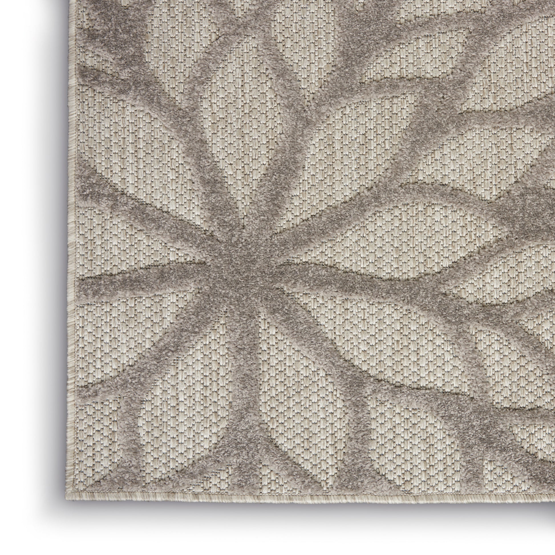 About Us: This sunny and sensational collection of flat woven outdoor rugs is pretty, practical and simply perfect for high traffic areas. With its inviting assortment of classic and contemporary designs, tempting color palettes and terrific textures, these multipurpose rugs will afford an air of simple sophistication to any environment. In shades of multi-toned grey, this Aloha outdoor rug brings extra life and excitement to your patio, deck, or poolside. Its high-low construction combines delightful texture with an intricately woven base for an exceptional look and feel that stands up to the elements. This rug is machine-made from premium stain-resistant fibers that are easily washable with a hose: simply rinse and allow both sides time to fully air dry. To extend the life of your rug, bring indoors during extreme weather.