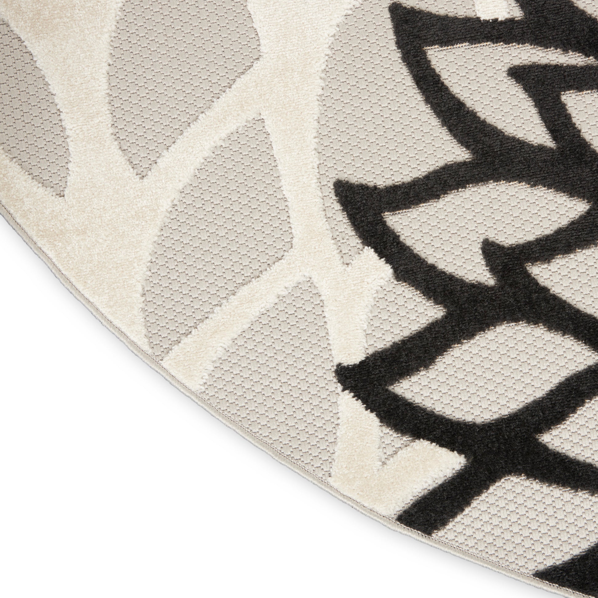 About Us: This sunny and sensational collection of flat-woven outdoor rugs is pretty, practical, and perfect for high-traffic areas. With its inviting assortment of classic and contemporary designs, tempting color palettes, and terrific textures, these multipurpose rugs will afford an air of simple sophistication to any environment. In shades of black, white and grey, this Aloha outdoor rug brings extra life and excitement to your patio, deck, or poolside. Its high-low construction combines delightful texture with an intricately woven base for an exceptional look and feel that stands up to the elements. This rug is machine-made from premium stain-resistant fibers that are easily washable with a hose: simply rinse and allow both sides time to fully air dry. To extend the life of your rug, bring indoors during extreme weather.