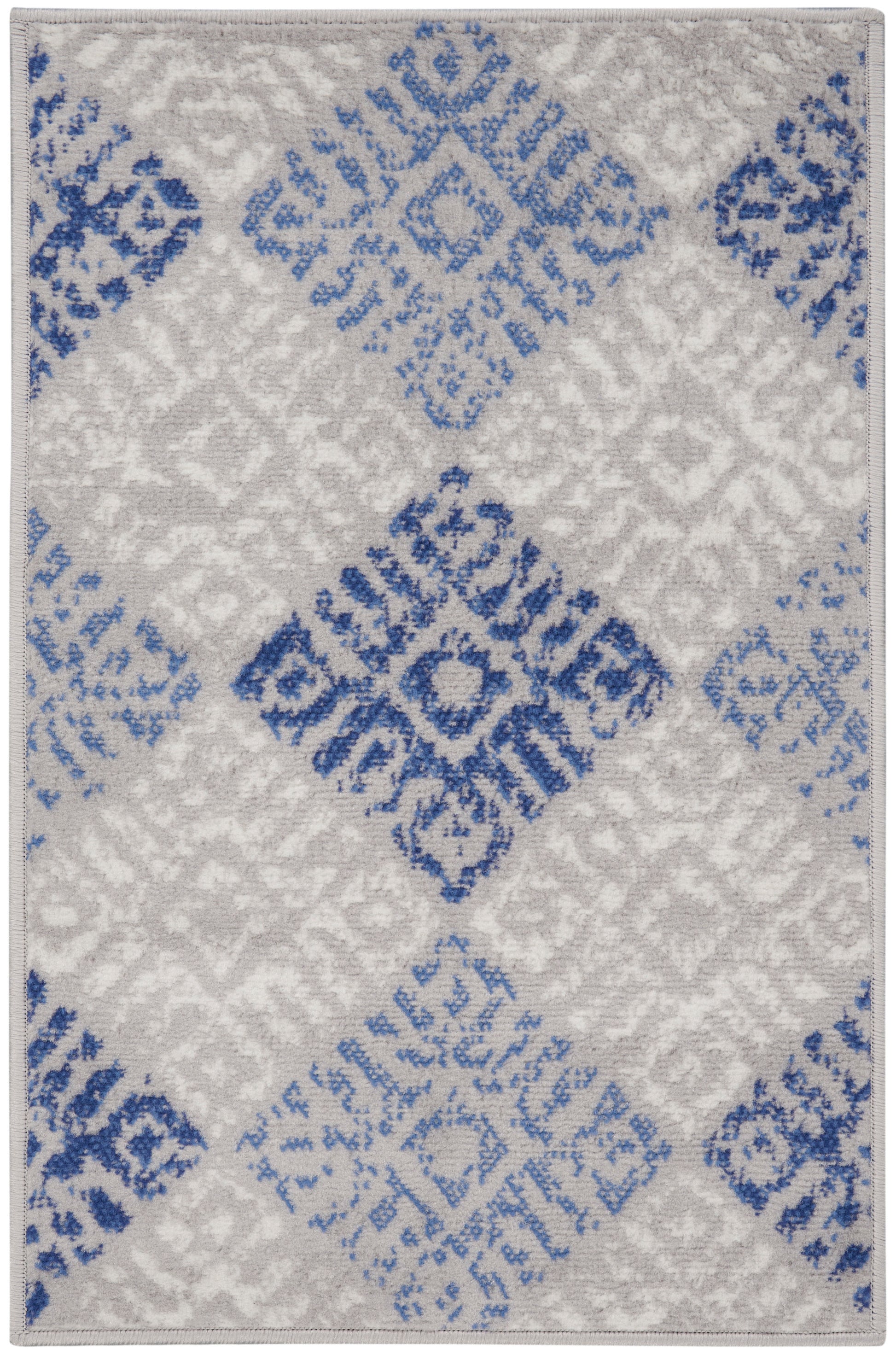 About Us: In true bohemian style, the Whimsicle Collection boasts an eclectic mix of tribal inspired, geometric, and classic floral motifs. Purposefully distressed vintage patinas in neutral, of-the-moment palettes make any Whimsicle Collection rug a versatile foundation for any style of decor. These expertly crafted low-profile area rugs are machine made of soft polyester for a seamless fit in your living room, bedroom, dining room, or home office. Define your space with this classic yet trendy area rug from the Whimsicle Collection. Oversized tribal motifs in neutral ivory and blue are woven onto a soft grey base for a versatile foundation in any room. This modern area rug is machine made of low profile, easy to clean polyester fibers.