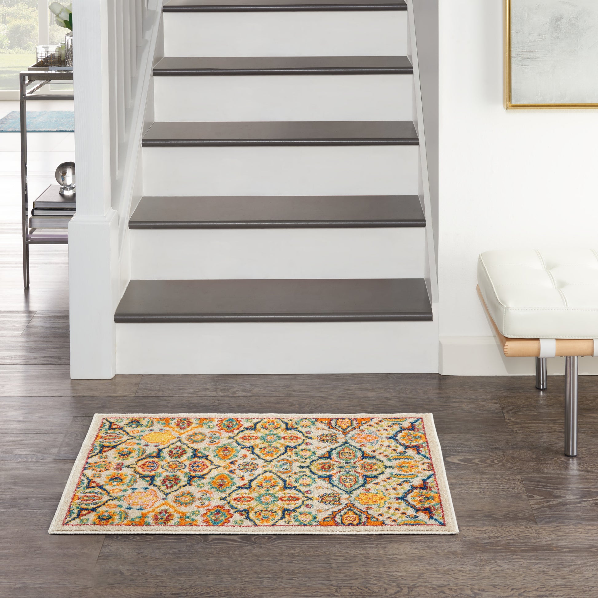 About Us: Fill your space with the warmth and comfort of the Allur Collection. With its eclectic mix of contemporary florals, Persian-inspired medallions, and tribal patterns in bright jewel tones, each Allur area rug exudes boho appeal. These vibrant rugs are Ideal for use in your living room, bedroom, or home office. Machine made of low shed, low profile polypropylene for easy cleaning. Bring a relaxed vibe to your living room or bedroom with this Allur Collection area rug. Its surface is adorned with a richly colored floral quatrefoil pattern in shades of orange, blue, yellow, green, and burgundy on an ivory ground. This warm and colorful design adds just the right amount of pop to bohemian settings. Machine made of low shed, low profile polypropylene for easy cleaning.