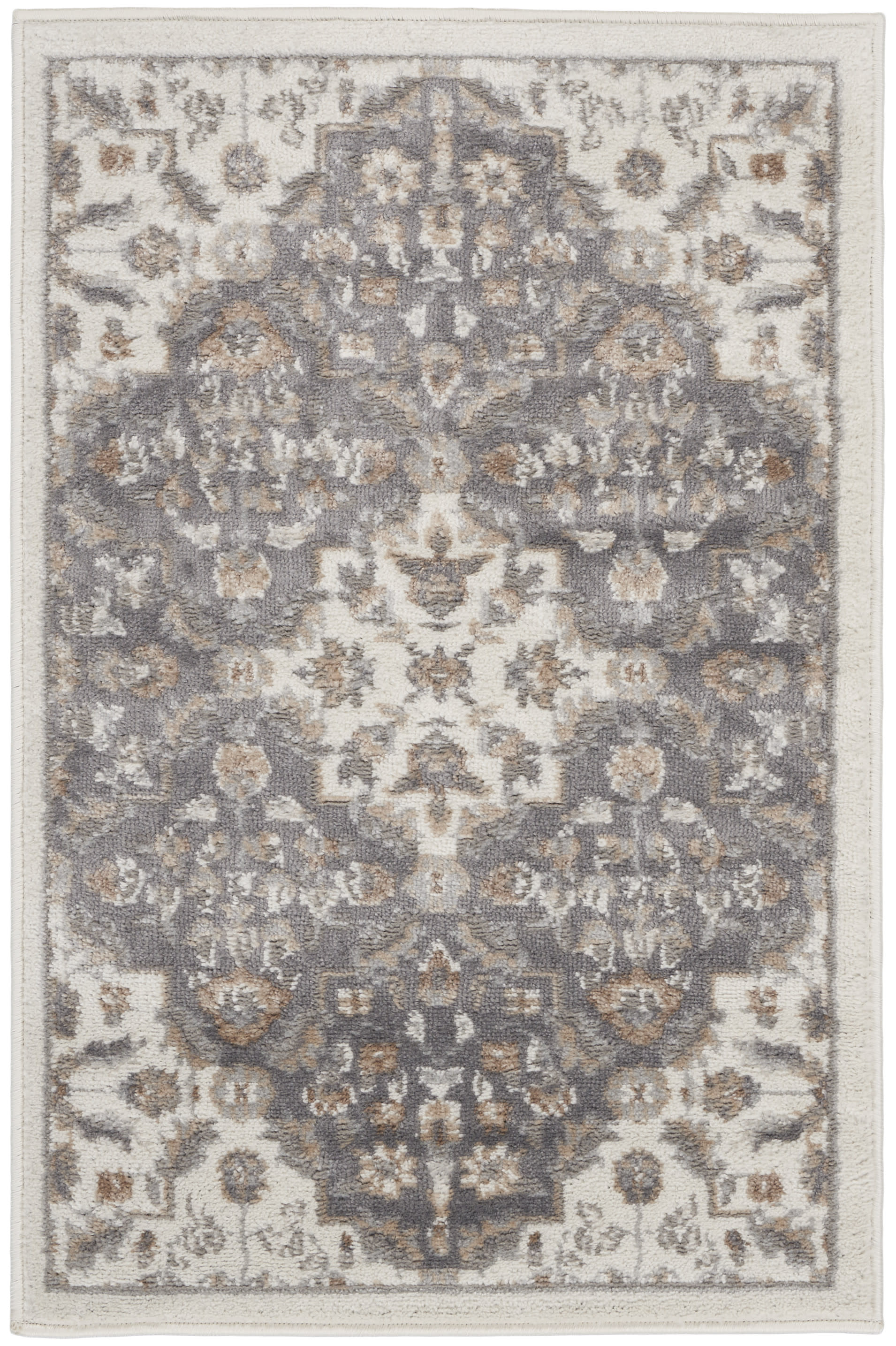 About Us: From vintage floral patterns to crisp geometric and abstract designs, the Elation Collection of area rugs creates a chic foundation for your d?cor. Choose from a range of rug sizes to complement your entryway, living room, or bedroom with fresh style. Expertly crafted of low-profile polypropylene and polyester fibers for lasting comfort, easy cleaning, and soft texture. A nod to traditional Persian designs, this area rug from the Elation Collection is reinterpreted for the modern age. Classic floral and diamond patterns are rendered in grey and ivory for an elegant foundation in farmhouse, boho chic, and contemporary decor. Machine made of polyester and polypropylene in a low-profile, easy to clean pile, it's an ideal choice for high traffic areas.