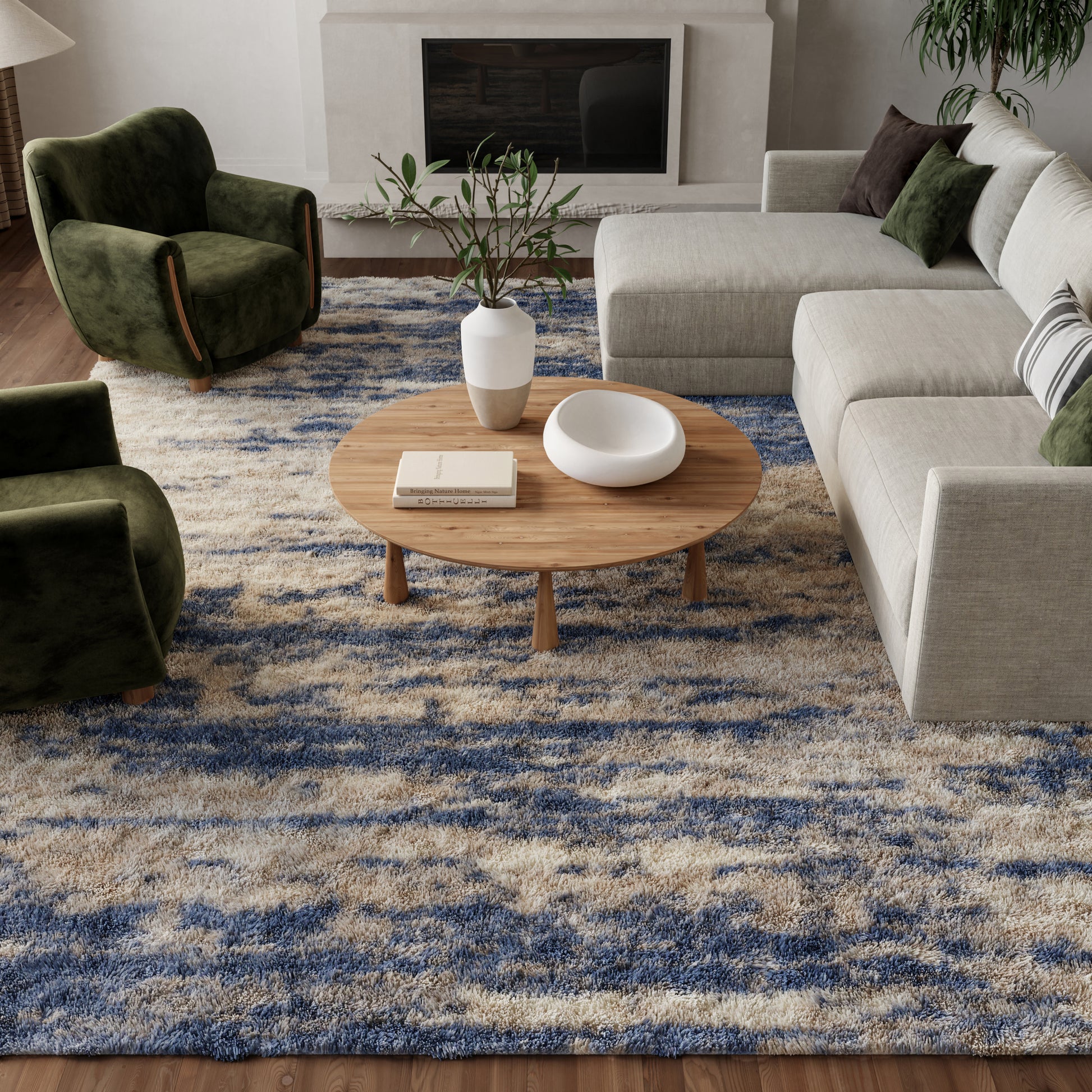 About Us: Hazy abstract designs, nature-inspired patterns and neutral hues come together to create the Dreamy Shag Collection. These modern rugs are crafted of irresistibly soft polyester fibers in an ultra-plush texture that you?ll love to sink your toes into. Make Dreamy Shag the centerpiece for your living room d?cor, or place in your bedroom for a cozy spot to plant your feet each morning. Invite a sense of calm to your home with the plush texture of this shag rug from the Dreamy Shag Collection. In neutral ivory and blue, it effortlessly complements a variety of modern and contemporary styles. Made from wonderfully soft polyester in a thick, 1.25? pile.