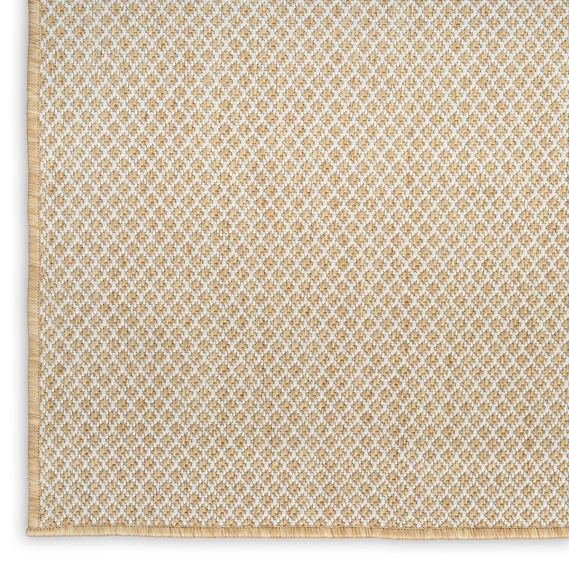 About Us: Set a warm and relaxing tone with the Courtyard Collection. These elegantly understated outdoor rugs feature subtly textured geometric patterns in fashionable palettes designed to anchor modern and contemporary decor. Flat woven polypropylene fibers stand up to heavy traffic and are easy to clean: simply hose-rinse and air dry. Courtyard rugs are ideal for your porch, patio, or any indoor space. With its striking geometric pattern, this Courtyard Collection outdoor rug exudes contemporary style. Its subtly textured surface is crafted in natural beige for a seamless complement to modern settings. Machine made from a blend of polypropylene and polyester in a flatweave style that stands up to heavy traffic and is easily washable outdoors: just hose-rinse and air dry.