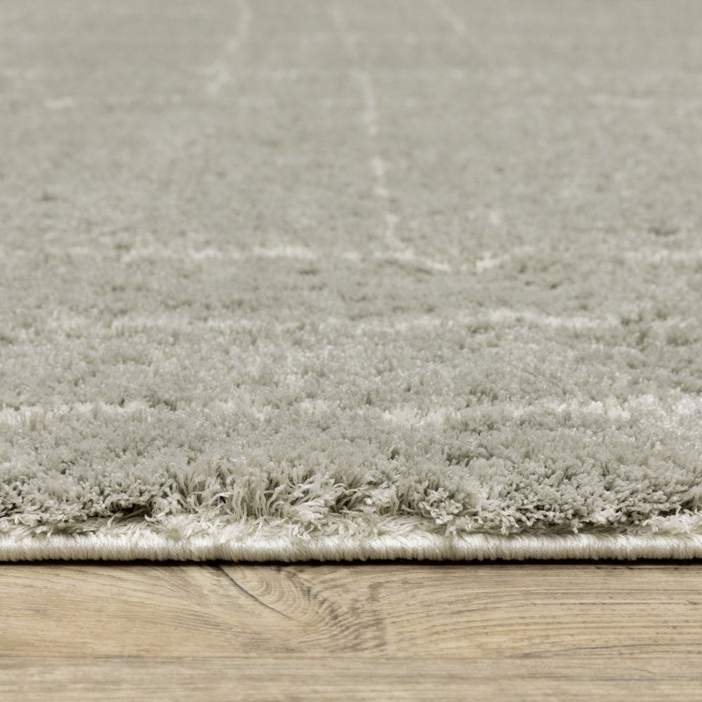 10' X 13' Grey And Ivory Geometric Shag Power Loom Stain Resistant Area Rug