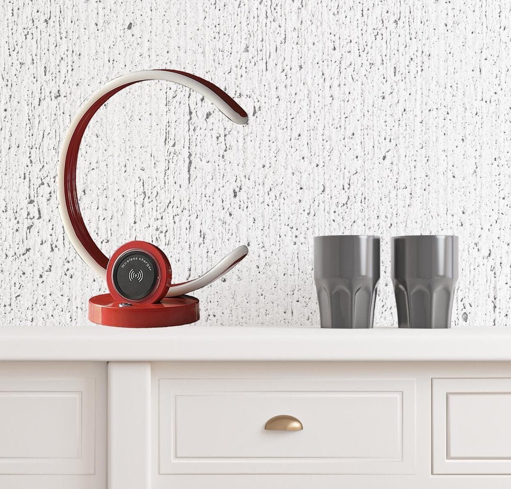 13" Red Contempo C Shape LED with USB Desk or Table Lamp