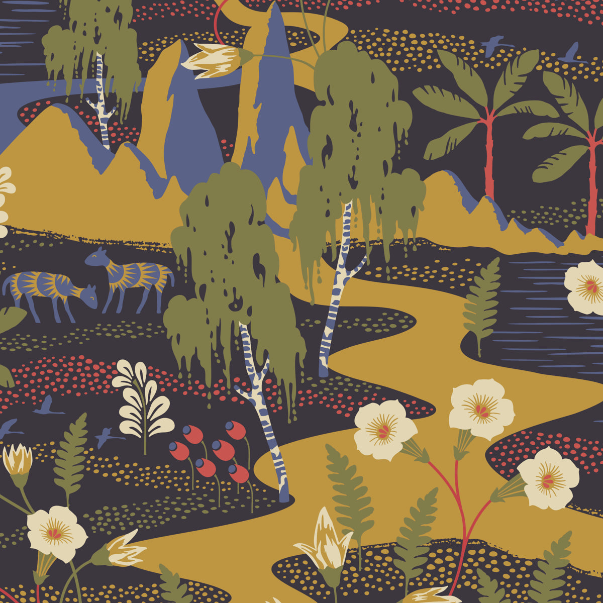 Use:Designed by Hanna Werning for Borastapeter, multi-colored Flyttfr?? is an eye-catching, conversation-starting wallpaper pattern depicting a mystical land of leisurely rivers, enchanting animals, soaring birds and exotic botanicals. This product is FSC Certified. Available in North America exclusively through Schumacher.