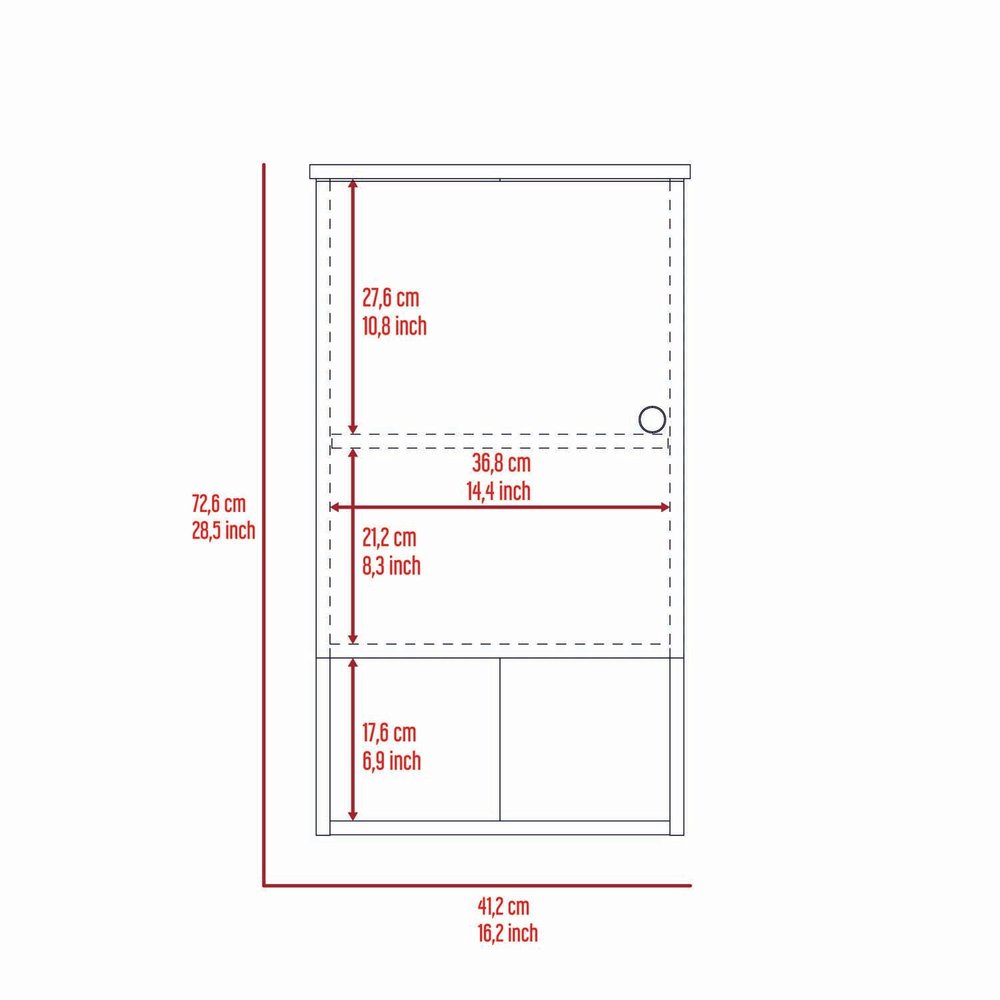 16" Light Oak And White Wall Mounted Cabinet With Three Shelves