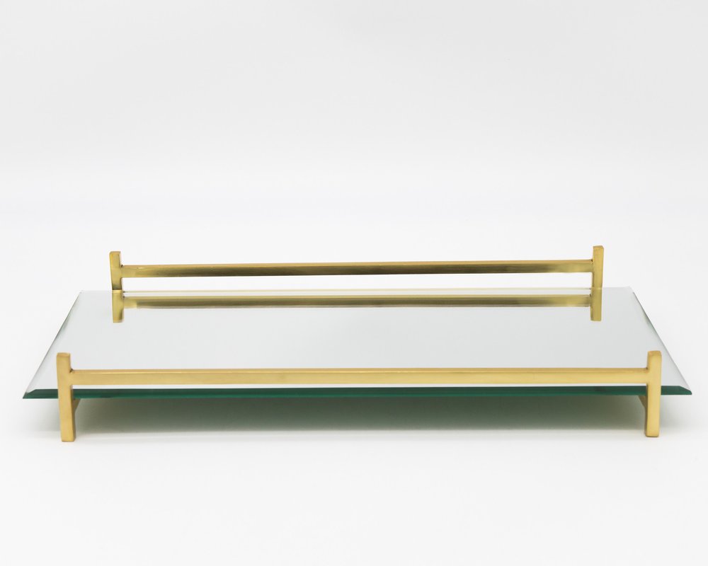 16" Mirror and Gold Rectangular Glass Vanity Tray