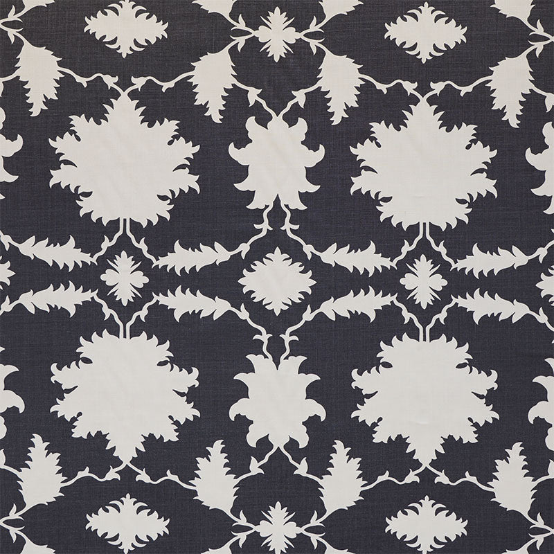 Use:Inspired by an antique Persian carpet, this large-scale, graphic print by Mary McDonald features symmetrical silhouettes of flowers and leaves. Also available as a wallpaper.