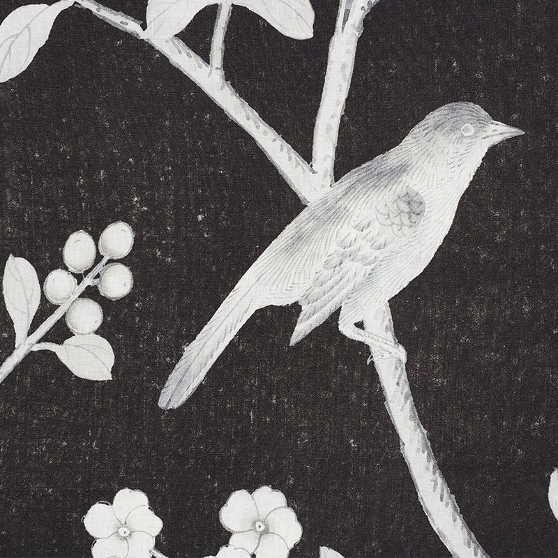 Use:Inspired by an antique Chinese silk panel, this Mary McDonald design features exotic birds and cherry blossoms. Available as a printed linen and a wallcovering.