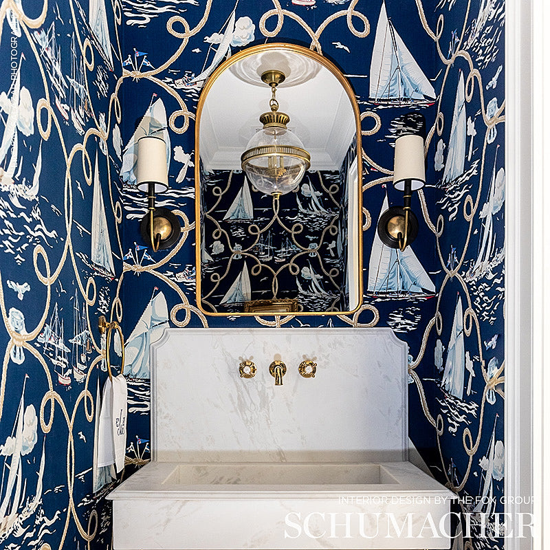 SCHUMACHER FABRIC CLASSIC PRINTS SUMMER REGATTA LINEN PRINT NAVY - 175190