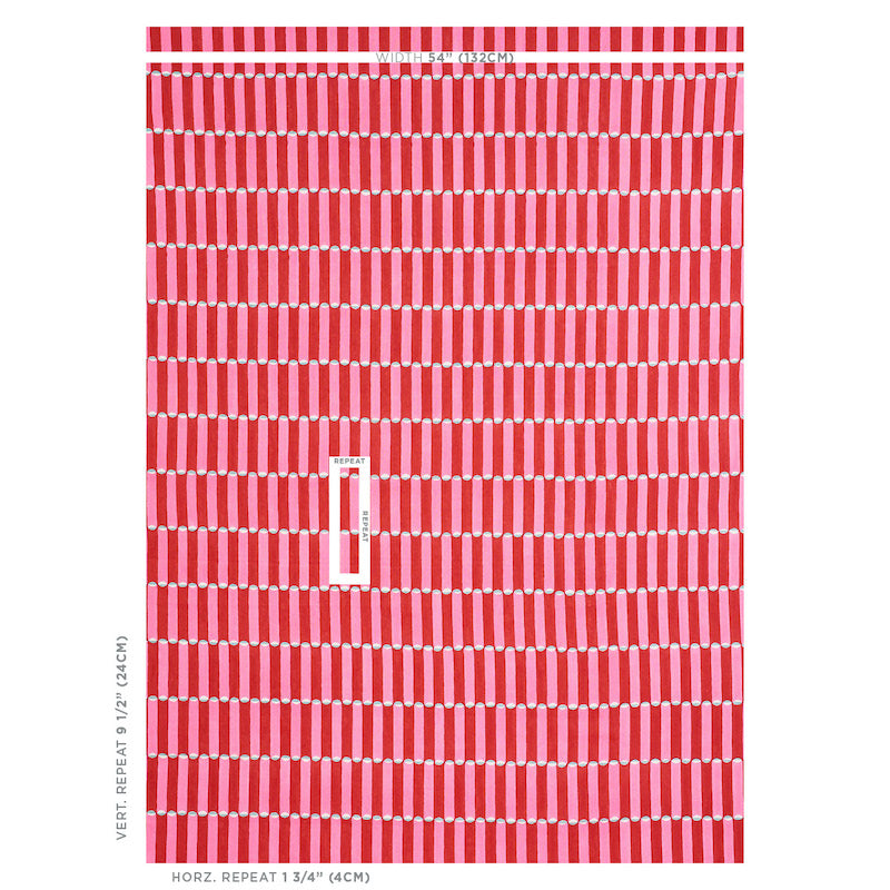 SCHUMACHER FABRIC MOLLY MAHON LUNA HAND BLOCK PRINT PINK & RED - 179280