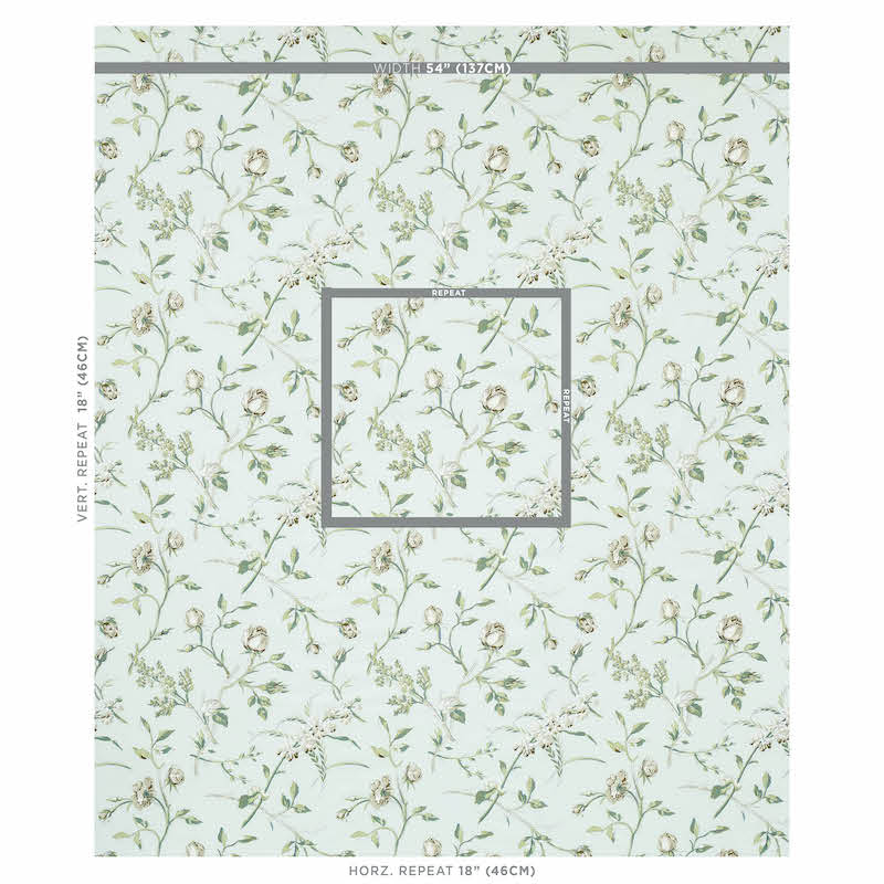 Use:A truly unique floral unlike any other in the Schumacher archive, this scattered toss of roses looks as if it was just gathered from an English garden, awaiting arrangement. Originating from the late 19th century, the multidirectional design is distinctly