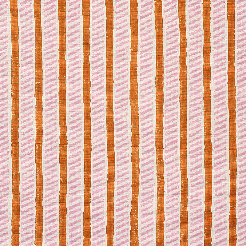 Use:Garden Path, a copper-and-rose-colored cotton-linen blend fabric, takes inspiration from the many stripes found in the English countryside, like the inviting lines left behind by a garden plough. Part of Molly Mahon's Hand Block Prints II collection.