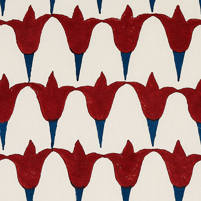 Use:In Tulip, an iron-and-indigo cotton-linen blend fabric, simple floral motifs are almost personified, reaching outward and bursting with cheerful color. Part of Molly Mahon's Hand Block Prints II collection.