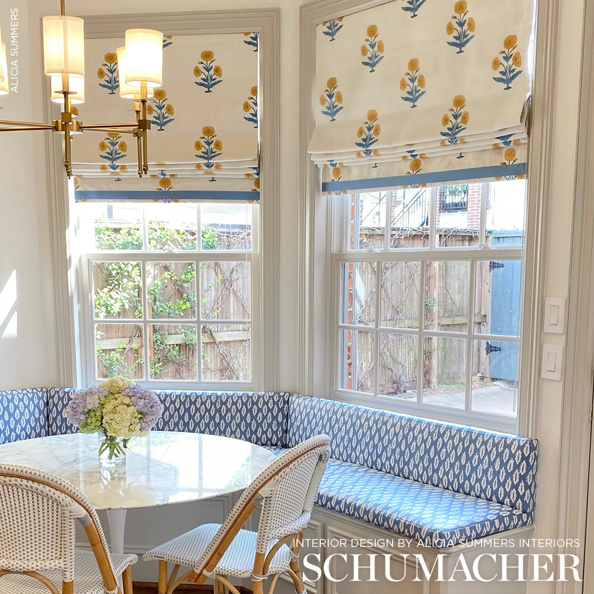 SCHUMACHER FABRIC MOLLY MAHON POPPY HAND BLOCK PRINT MUSTARD & SKY - 179841
