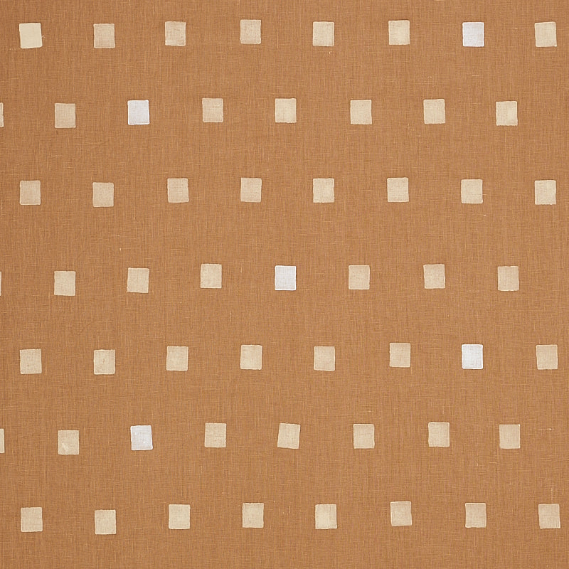 Use:Inkwell Hand Block was designed by artist Caroline Z Hurley in her Brooklyn studio and printed by hand in New Bedford, Massachusetts. A wonderful simplicity and sense of the hand comes through in this camel-colored pattern of scattered squares on linen fabric.