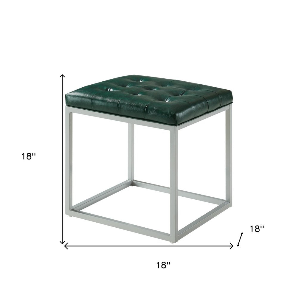 18" Cream Faux Leather And Gray Cube Ottoman