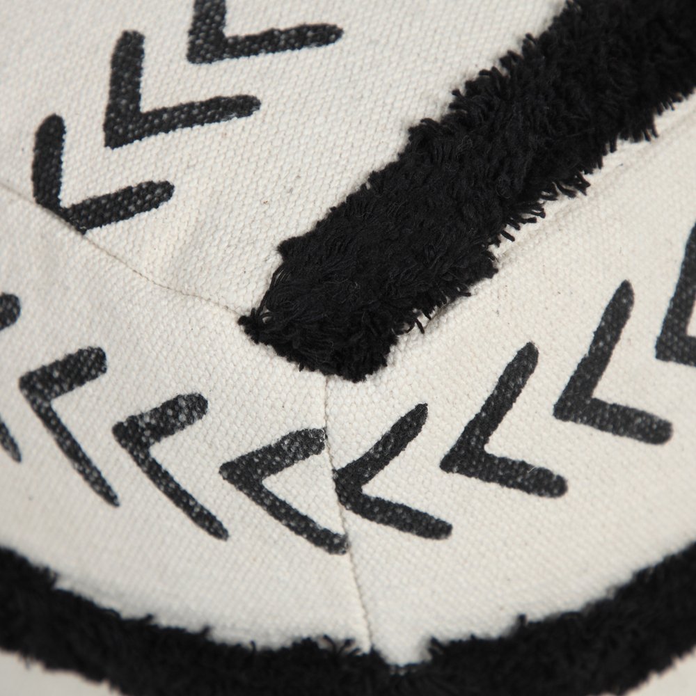 18" White Cotton Striped Pouf Ottoman