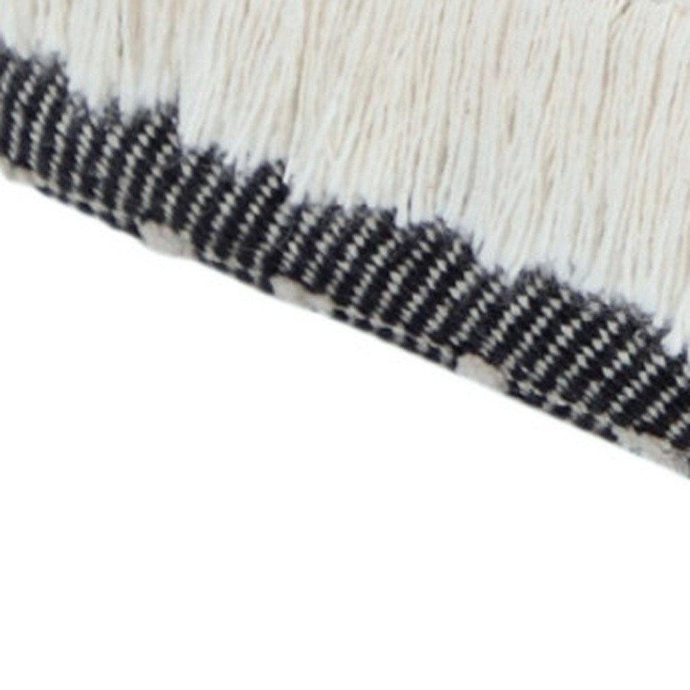 18" White Cotton Striped Pouf Ottoman