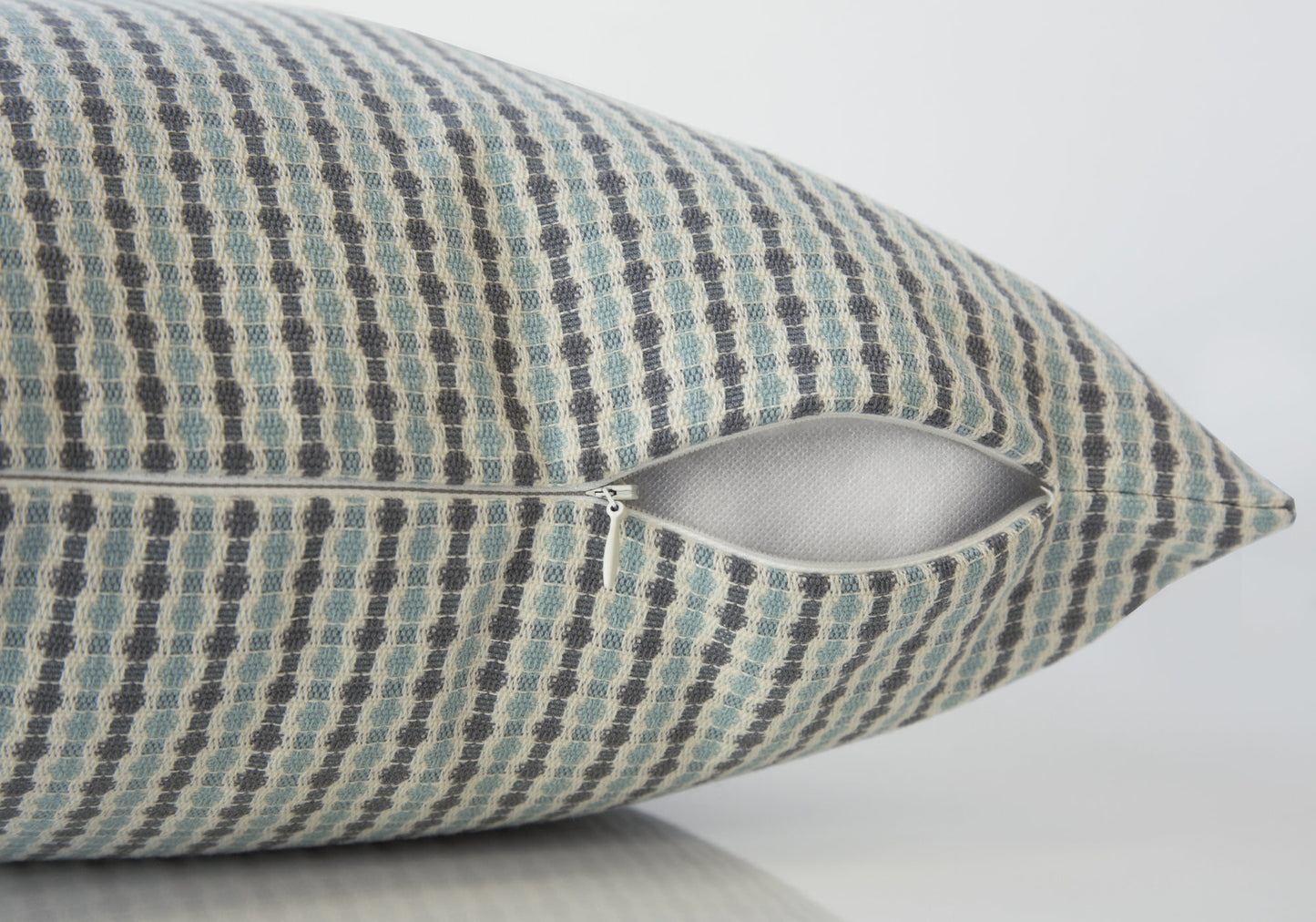 18" X 18" Blue and White Polyester Striped Zippered Pillow