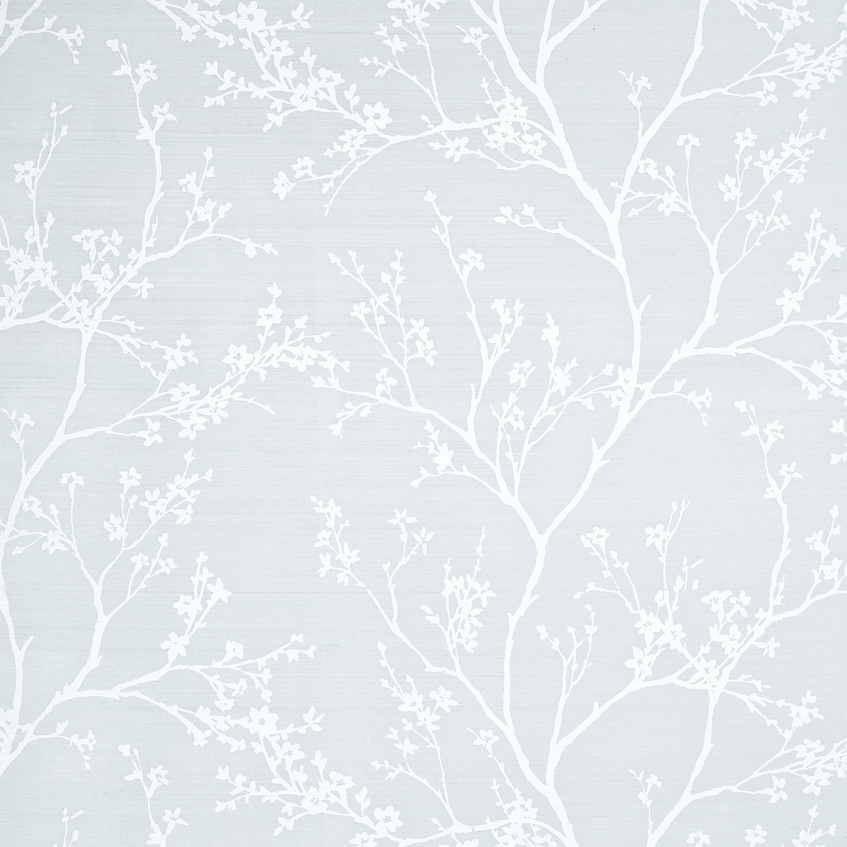 Use:Twiggy Silk in ice is a delicate yet graphic mid-scale pattern that brings the outdoors in, with beautiful flowering branches silhouetted against a solid ground. Pigment-printed on slubby Indian silk, this fabric has a subtle shimmer that makes it especially lovely for window treatments. Also available as a wallpaper.