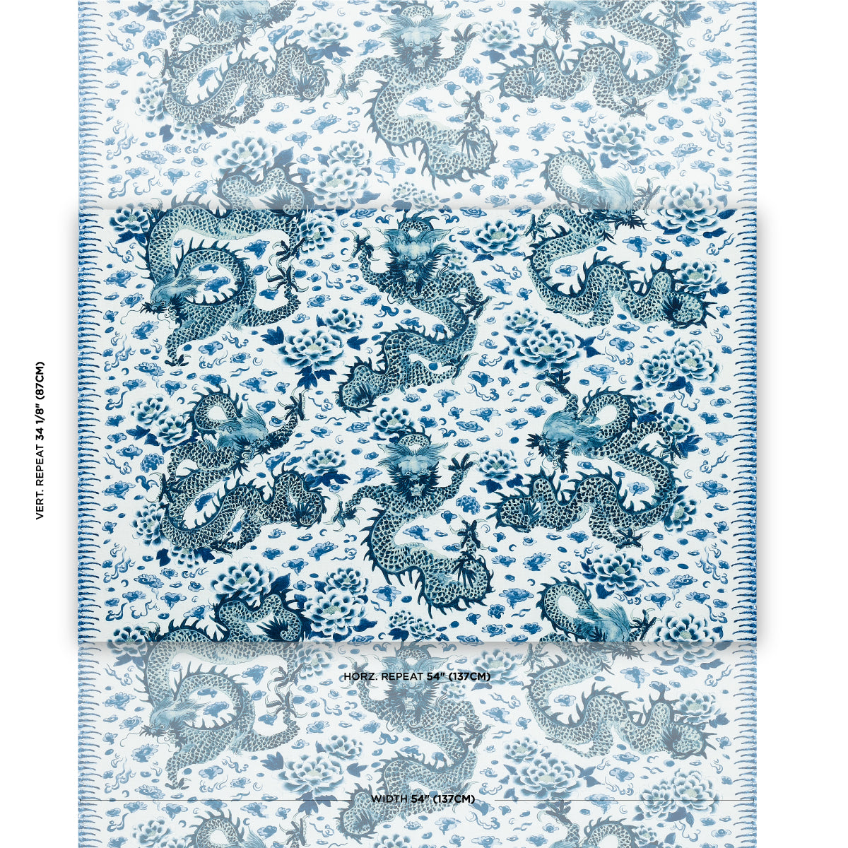 Use:Mary McDonald was inspired by traditional Chinese porcelains when she created Empress Dragon in delft. A fantastical homage to chinoiserie, this fabric has a wonderful combination of scrolling dragons, stylized flowers and unique border details. Featuring the soft, tonal qualities of a watercolor painting, this mid-scale print is a chic choice for upholstery, window treatments or pillows.