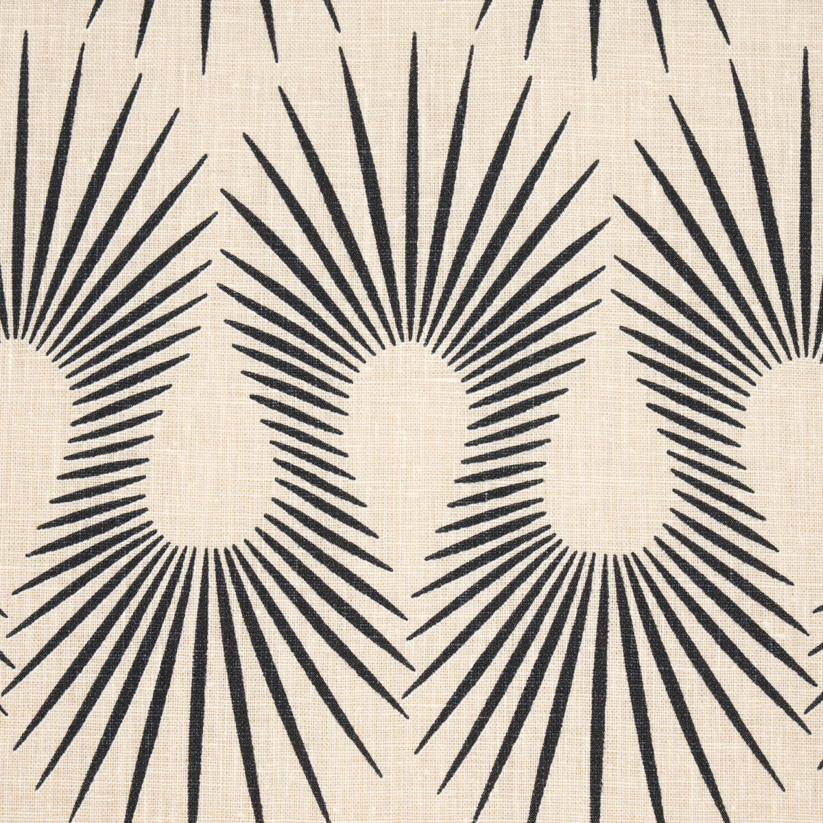Use:Neisha Crosland was inspired by a botanical design on a Japanese ceramic plate when she imagined Hedgehog, a serpentine horizontal stripe made of rippling spokes. Printed on a linen ground, this dynamic medium-scale fabric adds rhythm and movement to furniture, pillows and window treatments.