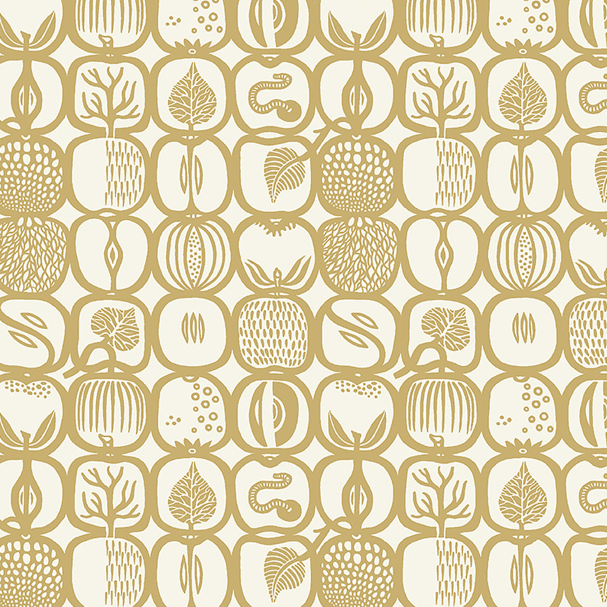 Use:A beloved pattern by Stig Lindberg for Bor?stapeter, Fruktl?da in ochre imbues quintessential Swedish charm to interiors. The joyful fruit-print wallpaper is filled with rich retro-inspired detail that effortlessly uplifts any room. This product is FSC Certified. Available in North America exclusively through Schumacher.