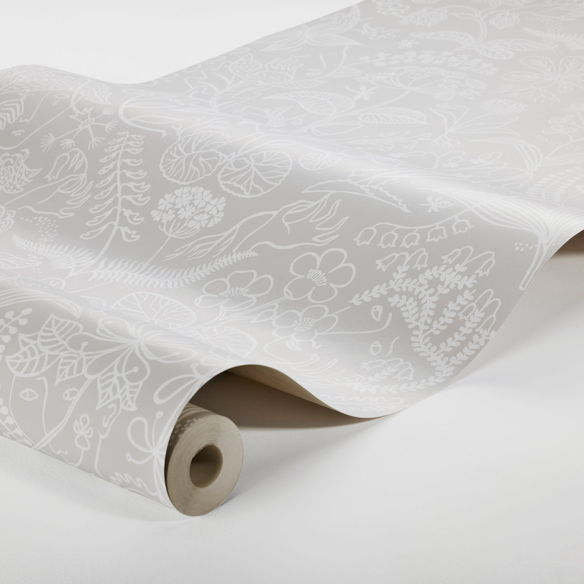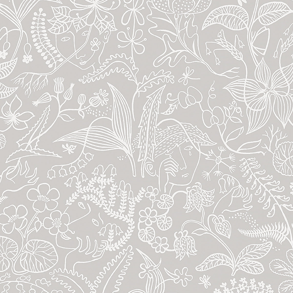 Use:At first glance, Bor?stapeter's Grazia wallcovering in grey resembles a joyful Swedish garden. Look closer, however, and you'll discover human faces and hands. It's an unexpected twist that adds a sense of delight to its surrounding space. This surrealist-style print by Stig Lindberg is FSC Certified. Available in North America exclusively through Schumacher.