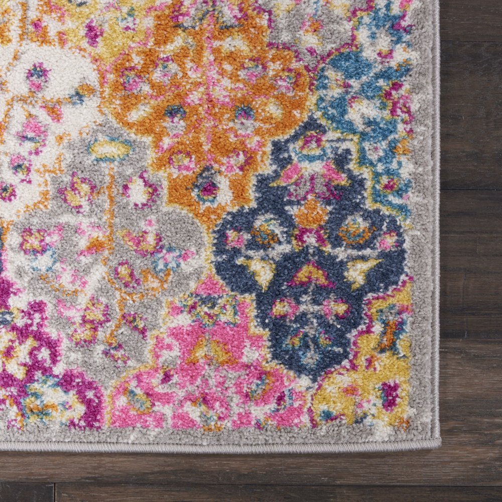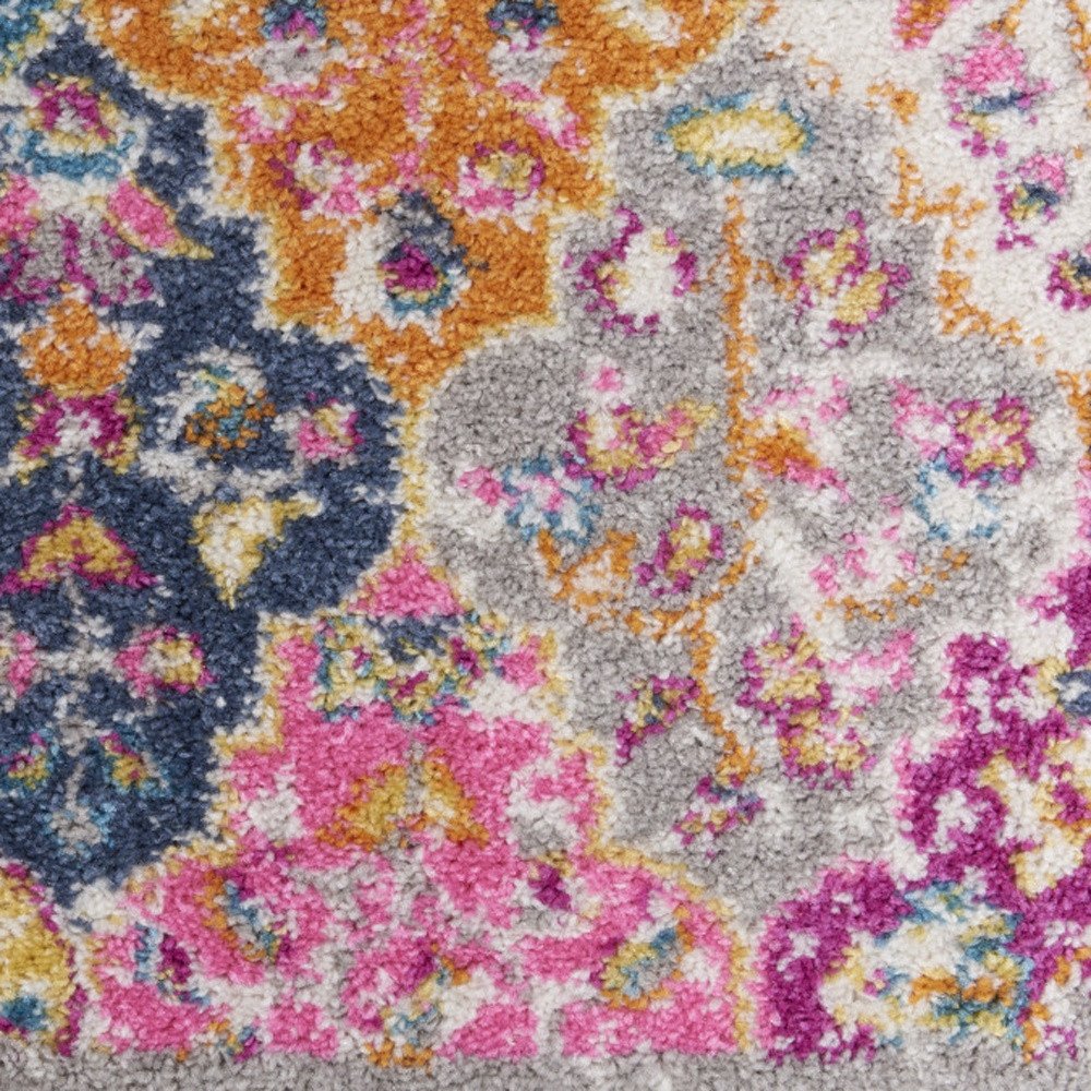 5' X 7' Gray Blue And Orange Quatrefoil Distressed Area Rug