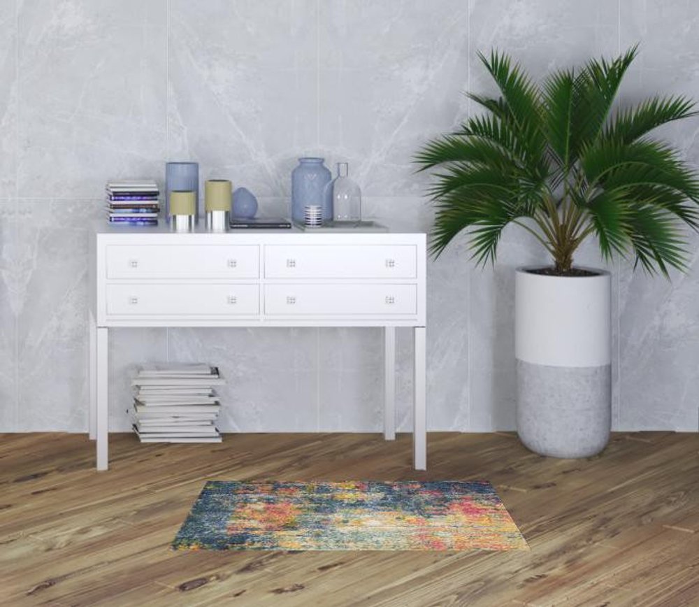2' X 4' Blue And Yellow Abstract Power Loom Non Skid Area Rug