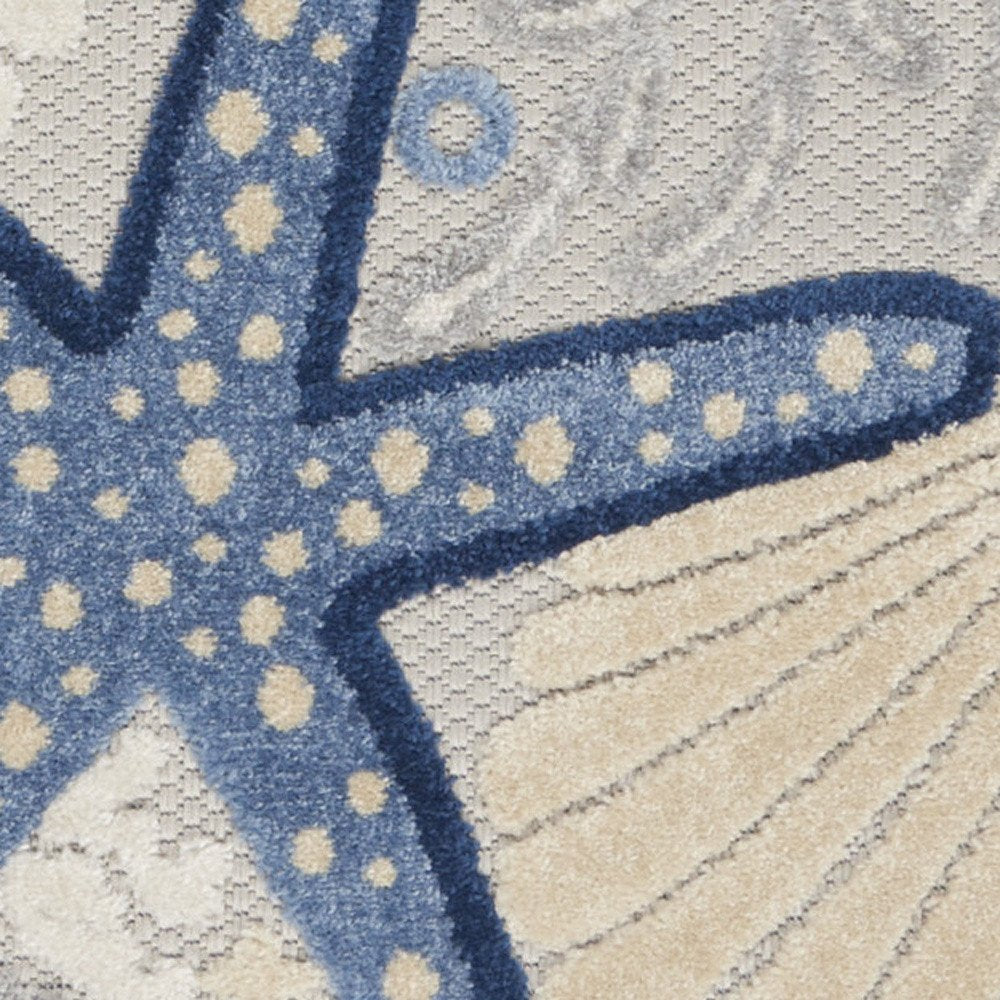 8' Blue And Gray Indoor Outdoor Runner Rug