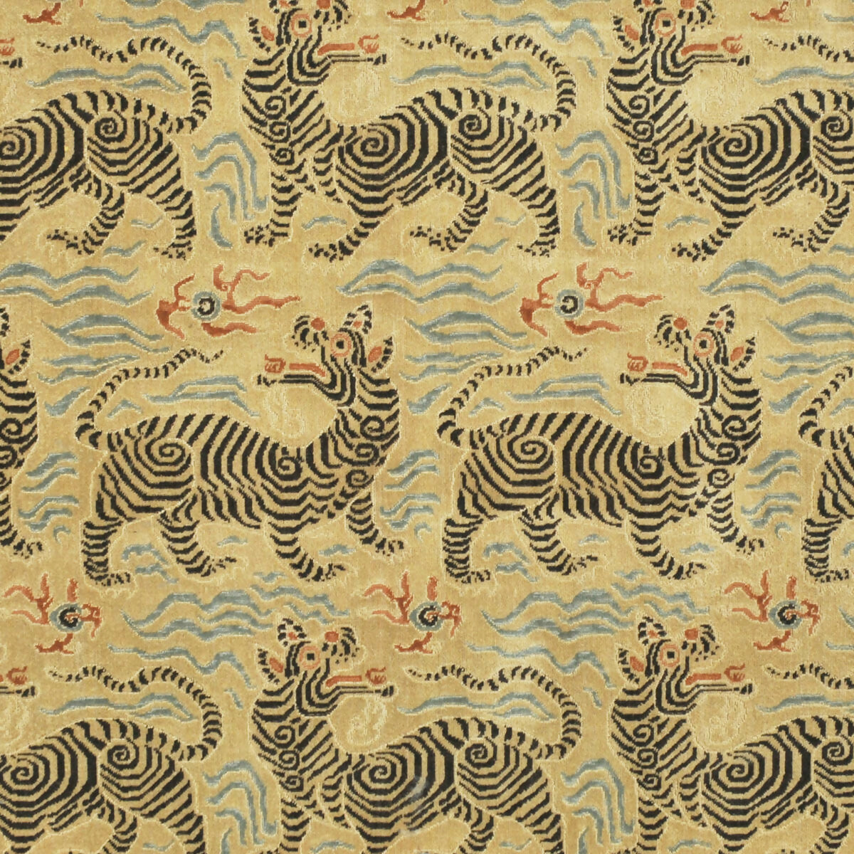 A striking Clarence House fabric featuring the iconic “Tibet Small Scale” pattern in Graphite. Hand-drawn tigers weave through clouds in an Asian-inspired motif, brought to life with depth and texture through a luxurious linen blend. This statement pillow captures the artistry and heritage of Clarence House textiles while maintaining a refined and timeless look.