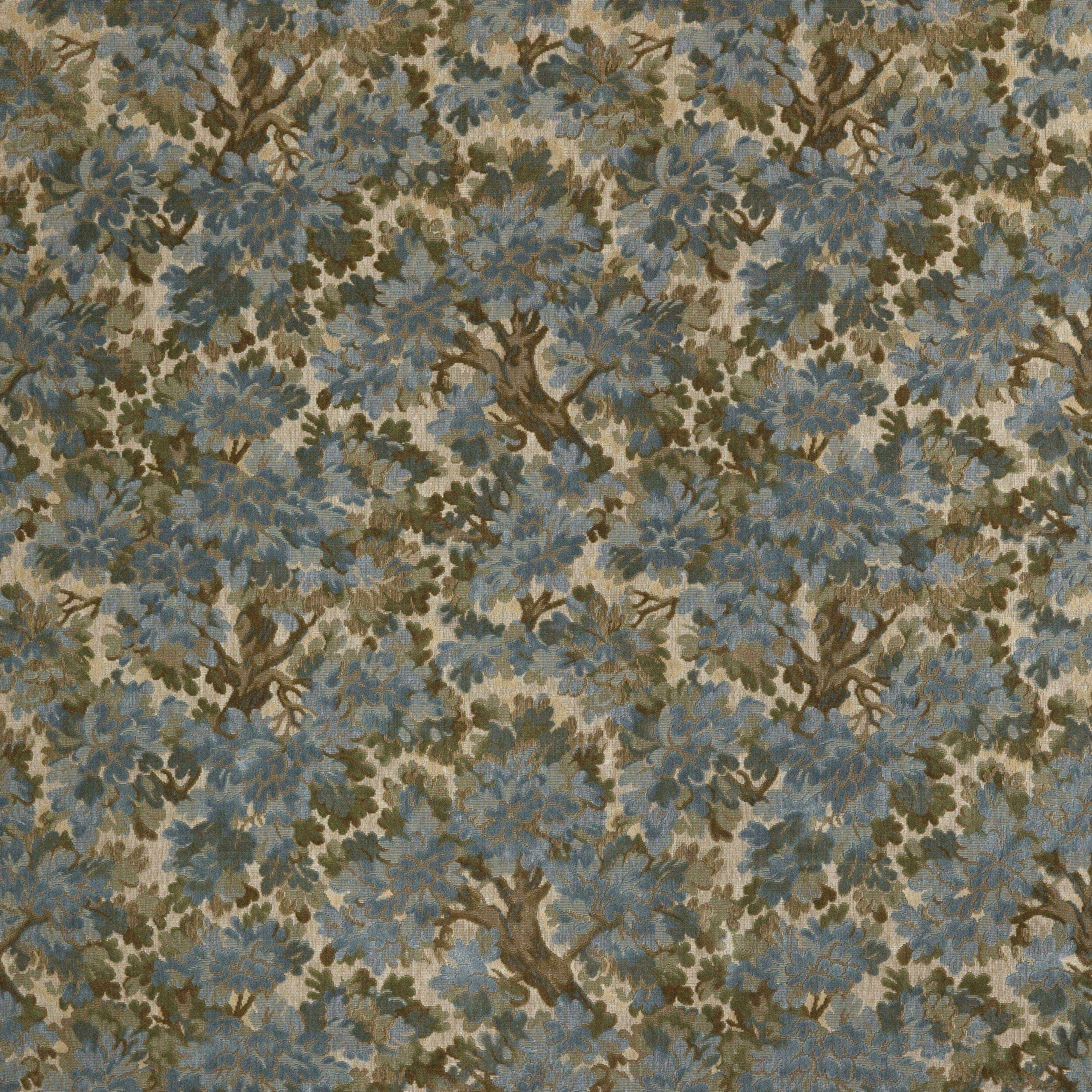 Cowtan & Tout’s Walden – Sky showcases a richly woven botanical velvet, blending soft blue and earthy tones with a detailed foliage design. The linen and cotton composition offers both texture and durability, making this a refined statement piece suited for classic and traditional interiors.