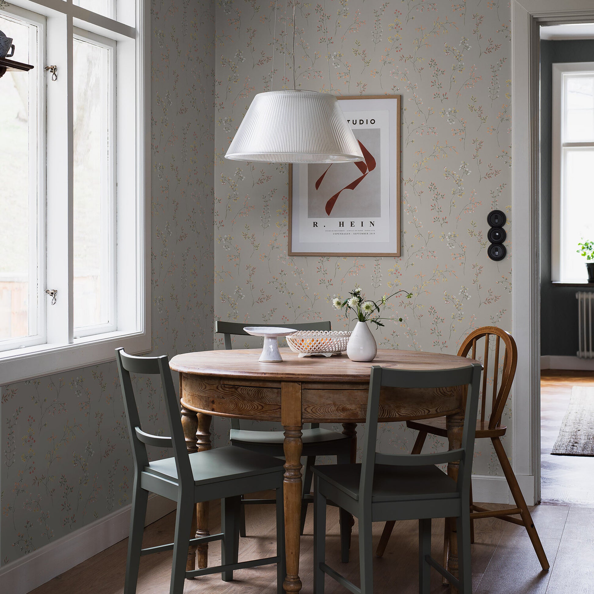 Use:Designed in the 195s, Gr???ng in stone is the epitome of classic Nordic style. Delicately illustrated meadow flowers are elegantly scattered across this wallpaper by Swedish heritage brand Bor?stapeter. This product is FSC Certified. Available in North America exclusively through Schumacher.